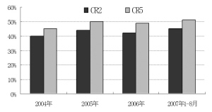 大中客車出口銷量及走勢(輛)2007年1—8月,在出口、客運(yùn)、公交、旅游等因素的拉動下,我國客車行業(yè)累計(jì)實(shí)現(xiàn)銷售客車15.3萬輛,同比增長22.8%,行業(yè)保持繁榮和穩(wěn)定增長,其中大型客車增長最為顯著,共實(shí)現(xiàn)銷量1.8萬輛,同比增長39%,遠(yuǎn)高于客車市場增長率。