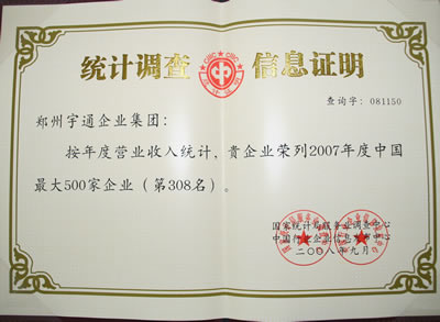 2007中國最大500家企業(yè)集團證書