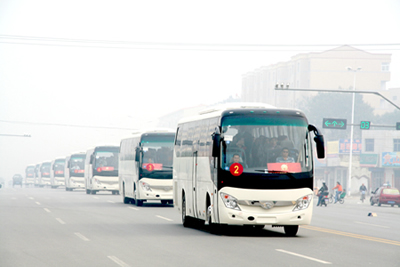 10月9日下午,10輛大客車排成了一條長(zhǎng)龍,載著來(lái)自全國(guó)各地的參展商代表緩緩駛?cè)霚铌?yáng),由十輛少林大客車組成的車隊(duì)氣勢(shì)宏大,成為鄭上路上一道靚麗的風(fēng)景線。400余名參展商代表入駐滎陽(yáng),拉開了2008全國(guó)秋季建筑機(jī)械交易會(huì)的序幕。