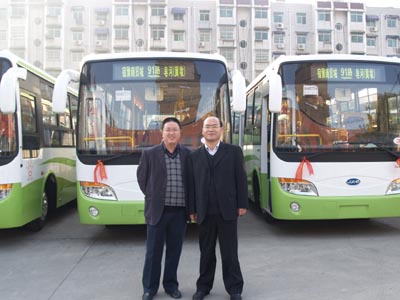 江淮客車(chē)銷(xiāo)售總公司總經(jīng)理章曉明與宿遷運(yùn)管處副處長(zhǎng)劉飛親切合影