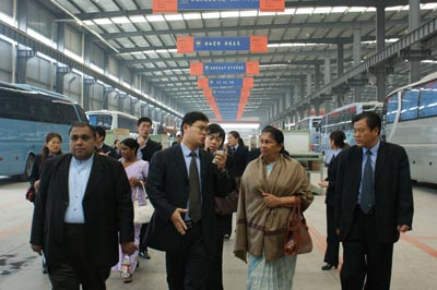 在中大汽車生產(chǎn)廠區(qū),姆瑞•巴拉蘇瑞亞女士一行先后參觀了中大汽車總裝、涂裝車間,還饒有興趣的試乘了中大A9豪華客車。