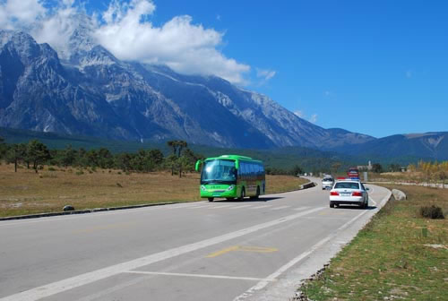 裝有福伊特液力緩速器的客車行駛在風(fēng)景如畫的古道公路上