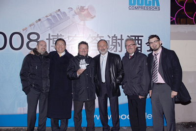 2008年3月10日晚,在 2008世界客車(chē)博覽亞洲展覽會(huì)開(kāi)幕前夕,博客壓縮機(jī)(杭州)有限公司在上海海龍海鮮舫召開(kāi)了“2008博客答謝酒會(huì)”。杭州工廠總經(jīng)理燕進(jìn)良和董事長(zhǎng) Mr. Klaus Oechsner (克勞斯.奧克斯納)在酒會(huì)上先后致辭,對(duì)中國(guó)客戶(hù)一直以來(lái)對(duì)博客的支持表示衷心的感謝,并對(duì)長(zhǎng)期以來(lái)支持和關(guān)注博客壓縮機(jī)發(fā)展的媒體朋友們表示感謝。