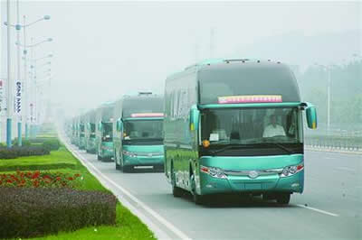 今年4月初,山東交運(yùn)集團(tuán)接到北京奧組委和省政府交通主管部門的緊急通知,正式被確定為北京奧運(yùn)會(huì)的交通保障服務(wù)企業(yè)。山東交運(yùn)集團(tuán)立即著手準(zhǔn)備組建大型奧運(yùn)服務(wù)車隊(duì),決定投資6000多萬元購(gòu)置70部豪華大客車,要求尾氣排放全部達(dá)到國(guó)Ⅲ標(biāo)準(zhǔn)。之后,山東交運(yùn)集團(tuán)面向全國(guó)客車生產(chǎn)廠家招標(biāo),鄭州宇通、浙江青年和上海申龍3家客車生產(chǎn)企業(yè)最終勝出。昨天,70部豪華大巴按期出廠,今天全部駛?cè)霛?jì)南市區(qū)集結(jié)。
