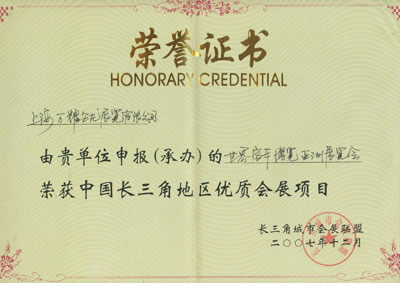 同年12月13日由長(zhǎng)三角城市會(huì)展聯(lián)盟、寧波市人民政府主辦,上海世博事務(wù)局和長(zhǎng)三角各政府、各大媒體支持的“中國(guó)長(zhǎng)三角地區(qū)優(yōu)秀會(huì)展項(xiàng)目、優(yōu)秀會(huì)展企業(yè)”頒獎(jiǎng)典禮上世界客車(chē)博覽亞洲展覽會(huì)再度榮獲“中國(guó)長(zhǎng)三角地區(qū)優(yōu)秀會(huì)展項(xiàng)目”光榮稱號(hào)。