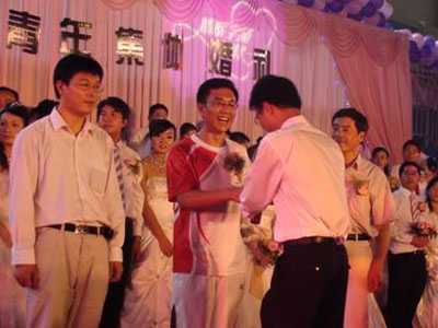 這次走訪宇通另一項重要的工作就是參加宇通第三屆的集體婚禮,婚禮的日期是在 2008 年的 8 月 8 日 ,也是舉世矚目的第二十九屆北京奧運會舉辦之際,可以說宇通的這次集體婚禮意義非凡,在婚禮的現(xiàn)場,以王總為代表的三名火炬手手持火炬登上舞臺,三個火炬在三十八對新人手中相互傳遞,我能感受到一種奧運的精神在傳遞,一種宇通的精神在傳遞,三十八對新人祝宇通的明天更加美好,從他(她)們洋溢著幸福的臉上看到宇通充滿希望的明天。宇通人文管理的精髓在這次集體婚禮中得到完美的體現(xiàn)。