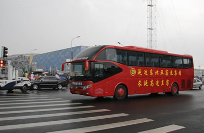 7月31號上午,吉林省交通廳服務奧運車隊出發(fā)進京。據(jù)吉林省交通廳有關領導介紹,吉林在此次赴京奧運服務的車輛和司機選擇上可是費了一番功夫。此次吉林省服務奧運車隊由長春客運集團有限公司、吉林吉運集團、延邊東北亞客運集團有限公司、延邊運輸有限公司大型客運車輛組成。25臺豪華大巴,25臺宇通車,清一色的ZK6127H,將為北京服裝學院、中國礦業(yè)大學、中國戲曲學院等在京12所高校奧運會志愿者提供服務。