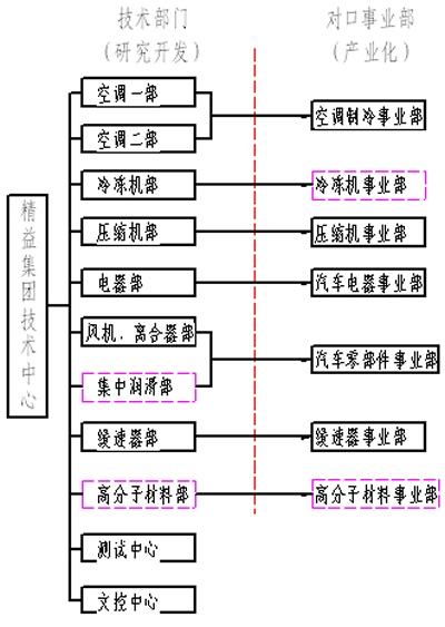 研究開(kāi)發(fā)系統(tǒng)。技術(shù)中心是精益集團(tuán)研究開(kāi)發(fā)系統(tǒng)的主體,是精益集團(tuán)科技進(jìn)步與技術(shù)創(chuàng)新的輻射源與技術(shù)供給中心。目前,技術(shù)中心已成為集團(tuán)產(chǎn)業(yè)與產(chǎn)品的孵化器。精益集團(tuán)每涉足一個(gè)新產(chǎn)業(yè),均先在技術(shù)中心成立新項(xiàng)目研究組,待技術(shù)、人才成熟后,再裂變?yōu)楣净蚴聵I(yè)部。壓縮機(jī)事業(yè)部、微電機(jī)事業(yè)部、緩速器事業(yè)部、高分子材料事業(yè)部和電器事業(yè)部都是由一個(gè)個(gè)項(xiàng)目研究組衍變派生發(fā)展起來(lái)的。