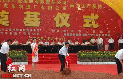 湖南省政協(xié)黨組成員王汀明、中國機(jī)械工業(yè)聯(lián)合會(huì)執(zhí)行副會(huì)長張小虞,北京市工促局局長李平等領(lǐng)導(dǎo),北京市國資委、北京市發(fā)改委、湖南省發(fā)改委、株洲市委市政府等有關(guān)部門負(fù)責(zé)人,北京汽車工業(yè)控股有限責(zé)任公司和北京汽車制造廠有限公司黨政領(lǐng)導(dǎo)出席了奠基儀式。