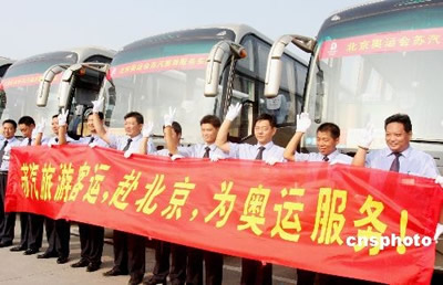 ·南京百輛“奧運大巴”昨開赴北京 將運輸奧運志愿者