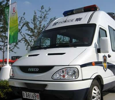 在奧運場館執(zhí)勤的依維柯警車
