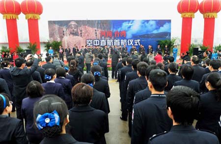 近日,豫臺兩地民眾期盼已久的河南至臺灣空中直航得以實現,由宇通客車自主研制的ZK6140BD新款機場擺渡車承擔了運送貴賓的光榮使命,130多名旅客搭乘從鄭州新鄭機場起飛的直航航班飛抵臺北。河南省委書記徐光春等為首航剪彩,并為首航旅客送行。此次河南、臺灣實現空中直航,拉近了河南與臺灣的距離,使豫臺兩地實現了真正意義上的“一日生活圈”,節(jié)約了兩地交流的時間和成本,這是實實在在惠及兩岸同胞的好事,今后將會有更多的臺商到河南投資創(chuàng)業(yè)、安家落戶。