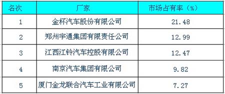 2010年9月客車行業(yè)市場(chǎng)占有率前五名(圖)