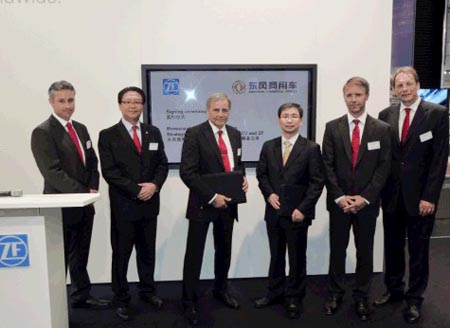 在2010年漢諾威國際商用汽車展覽會上,采埃孚股份公司與東風商用車公司鞏固雙方的戰(zhàn)略性伙伴關系。除了聯合開發(fā)工作以外,雙方簽署的協(xié)議還包括采埃孚為東風商用車公司提供機械式自動變速器。
