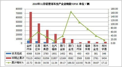 2010年11月客車生產(chǎn)34186輛,累計(jì)生產(chǎn)320057輛,銷售32877輛,累計(jì)銷售321817輛,同比累計(jì)增長分別為29.38%和33.16%。