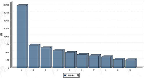 2010年11月大型客車企業(yè)銷量前十統(tǒng)計