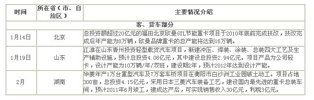 2010年商用車新基地、新項(xiàng)目建設(shè)情況匯總(圖文)