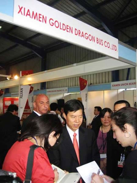為促進(jìn)廈門與中部地區(qū)的經(jīng)貿(mào)交流,幫助市各企業(yè)開拓中部市場,由廈門市副市長葉重耕帶隊(duì),組團(tuán)赴合肥參加第四屆中國中部投資貿(mào)易博覽會(huì),并設(shè)立了廈門展區(qū),進(jìn)行我市主要工業(yè)企業(yè)和產(chǎn)品等的宣傳和展示。廈門金龍旅行車有限公司作為國內(nèi)客車行業(yè)龍頭企業(yè)之一,自1992年成立至今,充分發(fā)揮經(jīng)濟(jì)特區(qū)發(fā)展優(yōu)勢,始終敢于實(shí)踐、勇于開拓創(chuàng)新,率先在新能源客車技術(shù)、客車減排技術(shù)研究和客車防腐工藝提升等眾多方面、眾多領(lǐng)域進(jìn)行了一系列的改革和探索,為中國客車行業(yè)的技術(shù)領(lǐng)先起了示范和帶動(dòng)作用。此次在展會(huì)中展示了其多年來的技術(shù)研發(fā)成果及相關(guān)客車介紹,包括應(yīng)用了六項(xiàng)節(jié)能技術(shù)的新品客車、與韓國現(xiàn)代合作推出的XML6700考斯特產(chǎn)品、敢為天下先建立的國內(nèi)首家整車陰極電泳生產(chǎn)線等文字及圖片資料。