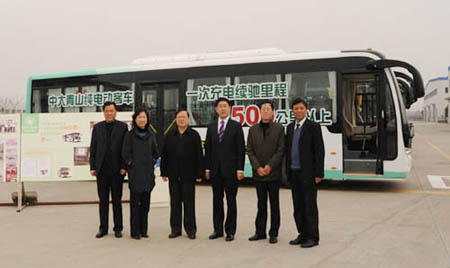 調研期間,徐連寬介紹了中大青山純電動客車的研發(fā)、示范運營及產業(yè)化進展情況。近期,獲得了江蘇省經濟和信息化委員會批復,中大汽車成為江蘇第一家新能源汽車示范運營廠家。中大青山純電動客車的技術突破是一次充電可持續(xù)行駛500公里,電池使命可達50萬公里,耗能不大于5度電/100km.t,經濟車速70km/h,最大爬坡度不小于20度。