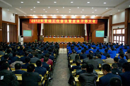 銷售公司常務(wù)副總經(jīng)理王斌對2009年公司各項經(jīng)濟(jì)指標(biāo)完成情況做了全面匯報,并對2010年營銷工作計劃進(jìn)行了闡述。王總講話中凸現(xiàn)圓滿完成2010年各項經(jīng)濟(jì)目標(biāo)的堅定決心,他說:“新的一年已經(jīng)開始,新的長征再次起程。2010年的銷售目標(biāo)已經(jīng)確立,工作計劃已經(jīng)制定,各項措施開始貫徹執(zhí)行,公司規(guī)章制度日臻完善。在新的一年里,我們需要團(tuán)結(jié)一致、奮勇拼搏、逢單必爭、突破萬臺!”