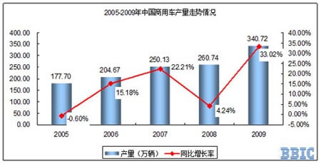 2、2005-2009年商用車產(chǎn)量統(tǒng)計(jì)與走勢(shì)分析