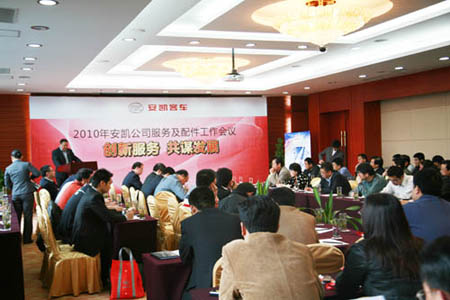 4月21日,在這春暖花開的時節(jié),2010年安凱公司服務(wù)及配件工作會議在風(fēng)景秀麗的安徽黃山隆重舉行。本屆年會的主題為“規(guī)范服務(wù)共同經(jīng)營”,來自全國各地近80家安凱特約服務(wù)站、經(jīng)銷商、配套廠家和供應(yīng)商代表們齊聚一堂,總結(jié)2009年度安凱售后服務(wù)體系運作以及配件供應(yīng)所取得的經(jīng)驗,共商2010年用戶服務(wù)和配件供應(yīng)體系建設(shè)大業(yè)。同時安凱還對09年度服務(wù)工作做出突出貢獻的優(yōu)秀服務(wù)站、配件經(jīng)銷商和先進個人進行了表彰。