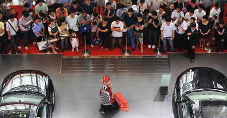 5月21日,參觀者在欣賞一款汽車。當(dāng)日,“2009湖南汽車展覽會(huì)”在湖南國(guó)際會(huì)展中心開幕。本次車展共有65個(gè)汽車行業(yè)品牌入駐參展,部分汽車廠商利用車展推出現(xiàn)場(chǎng)購車優(yōu)惠活動(dòng),吸引參觀者選購。