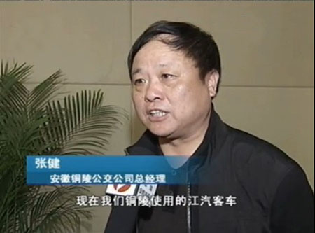 安徽銅陵公交公司總經(jīng)理張健表示:“現(xiàn)在我們銅陵使用的江汽客車已經(jīng)占到50%左右,今年大約有80輛計(jì)劃采購任務(wù)。”