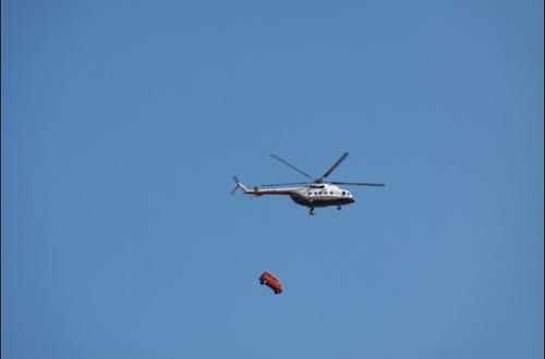 新車投放儀式分為“展翅翱翔”“創(chuàng)世新生”和“馳騁疆域”三個部分。在精彩的跳傘、滑翔傘表演之后,在《馬群》舞蹈壯闊氣氛中,伴隨著悠揚的草原音樂,天邊一架直升飛機緩緩向看臺飛來!俺晒σ惶枴蔽⑿涂蛙囋陲w機的吊運下,在空中一點點走近人們的視線,仿佛從天邊展翅飛來。