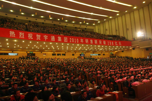 1月31日,宇通集團在省人民會堂召開年終總結表彰大會,慶祝集團銷售收入突破208億元,并對2010年涌現(xiàn)出的先進集體及個人進行表彰和獎勵。河南省委常委、市委書記連維良,市長趙建才,市人大主任白紅戰(zhàn),市政府副市長孫金獻,市政府副秘書長張吉,市交通運輸委員會黨委書記、主任范強,市工業(yè)和信息化委員會主任史占勇,管城區(qū)區(qū)委書記法建強等省市區(qū)領導出席表彰會并為先進頒獎。