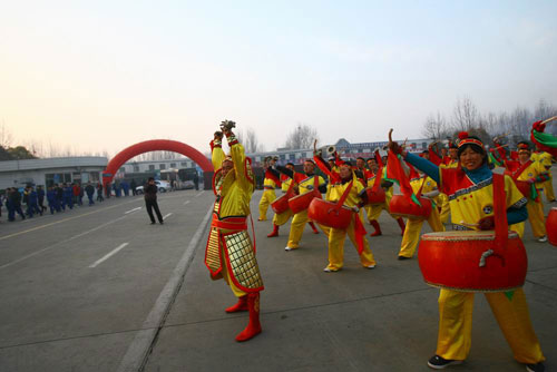 據(jù)了解,宇通公司分別在工業(yè)園區(qū)和老廠區(qū)各個門口準(zhǔn)備了6條21米長的舞龍、10對舞獅表演、100人的鼓樂隊(duì)和60掛百萬頭鞭炮,希望紅火的儀式為將喜慶歡樂的氣氛帶給了每一位員工,使大家士氣高漲、信心百倍。