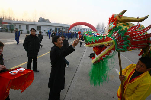 喜慶的鞭炮放起來,鏗鏘的鑼鼓敲起來,吉祥的獅龍舞起來……2月15日,宇通公司在騰飛廣場隆重舉行2011年新春開工儀式,公司領(lǐng)導(dǎo)列隊(duì)歡迎員工返廠上班,公司總裁湯玉祥現(xiàn)場親自提筆為雙龍點(diǎn)睛,把現(xiàn)場熱烈喜慶的氣氛推向高潮。在播種希望的初春,宇通以這種傳統(tǒng)的慶典方式,歡迎員工回到工作崗位開始新一年的生產(chǎn)工作。