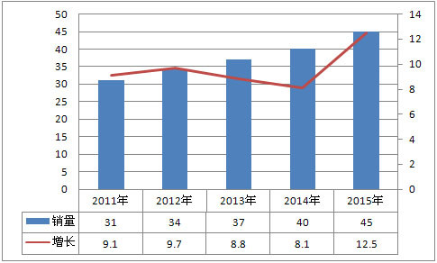 根據(jù)宏觀經(jīng)濟及政策法規(guī)判斷,2011年汽車市場宏觀環(huán)境肯定沒有2010年好,另外,2010年汽車市場尤其是乘用車市場的高速增長在一定程度上透支了2011年的汽車市場需求。但是,中國汽車市場剛性需求仍然很大,據(jù)公安部統(tǒng)計,至2009年底,我國汽車保有量6209.41萬輛。其中載客汽車保有量為4840.81萬輛,載貨汽車保有量為1368.61萬輛。以13.35億人口計算,2009年中國千人汽車擁有量為46.5輛。2009年中國千人載客汽車擁有量為34.4輛。與國際發(fā)達國家相比,千人汽車保有量仍很低,所以汽車市場遠未達到飽和狀態(tài)。預(yù)計2011年汽車市場銷量將達到約1957萬輛,同比增長約8.4%。2012年汽車市場銷量增幅會有所提高。2013年和2014年增長幅度將繼續(xù)保持平穩(wěn),2015年會保持慣性增長。