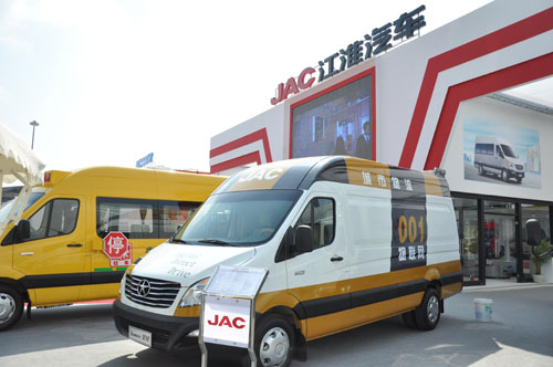 江淮星銳此次出動了旗下3輛數(shù)字化產(chǎn)品:3D(Digial&Direct&Drive)物流車、數(shù)字化校車以及數(shù)字化客車。3輛車均基于星銳長軸產(chǎn)品平臺改裝而成,典型的歐系短頭寬體式設(shè)計(jì),由江淮意大利都靈設(shè)計(jì)中心捉刀的風(fēng)尚造型,體現(xiàn)了當(dāng)下最流行的歐洲商用車造型設(shè)計(jì)理念:簡潔流暢、時尚大氣。其中又以顏色外觀十分搶眼的星銳校車和設(shè)備精密專業(yè)的3D物流車最為吸引觀眾,人氣絲毫不輸轎車。
