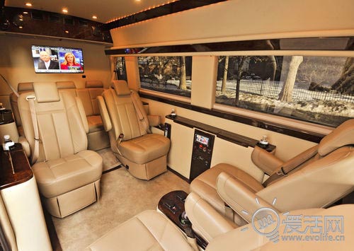 由于是定位于長(zhǎng)途旅行,因此電視自然是少不了,Brilliant Van裝有兩臺(tái)32寸衛(wèi)星電視,而車身兩側(cè)同樣配備了液晶顯示屏,這樣不管哪個(gè)乘客坐在車中都能看到屏幕上的電視畫(huà)面,加上八聲道數(shù)碼音響系統(tǒng),不看電視只聽(tīng)歌也是頂級(jí)享受!同時(shí)車內(nèi)還配有無(wú)線頭戴式耳機(jī),乘客可以在不打擾他人的前提下欣賞電視節(jié)目。而且Brilliant Van在辦公設(shè)備方面也毫不含糊,不僅配備了WiFi網(wǎng)絡(luò)和免提通話裝置,還安裝了一臺(tái)彩色打印機(jī)。