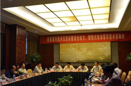 近日,2011第二屆中國(昆明)新能源公交客車大賽預(yù)備會在揚州召開。會議期間,中國城市公交協(xié)會科學(xué)技術(shù)分會理事長李世豪、秘書長葉東強(qiáng),中國城市公交增程式電動客車技術(shù)創(chuàng)新平臺秘書長李革臣、北京清華節(jié)能與新能源汽車工程中心教授張禾等行業(yè)領(lǐng)導(dǎo)、專家以及來自杭州、寧波、昆明等地多家公交公司負(fù)責(zé)人齊聚亞星客車,參加了亞星客車技術(shù)交流會暨混合動力、增程式電動車技術(shù)咨詢會。江蘇亞星汽車集團(tuán)有限公司董事長、總經(jīng)理、黨委書記兼揚州亞星客車股份有限公司董事長金長山、揚州亞星客車股份有限公司執(zhí)行總經(jīng)理李曉、副總經(jīng)理李躍平出席了會議。