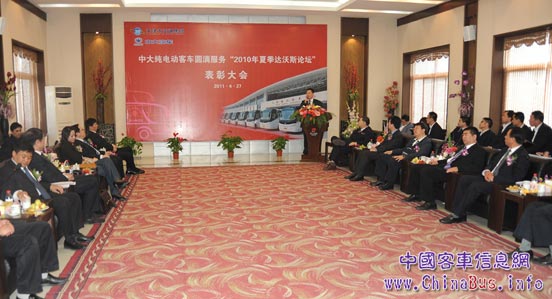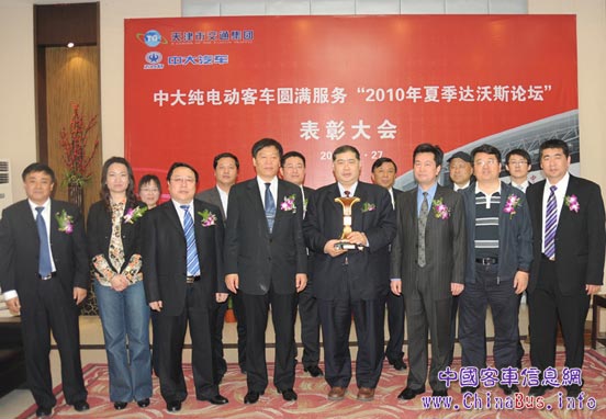 4月27日,中大純電動(dòng)客車圓滿服務(wù)“2010年天津夏季達(dá)沃斯論壇”表彰大會(huì)在鹽城召開。會(huì)議總結(jié)回顧了中大純電動(dòng)客車在天津達(dá)沃斯論壇期間的實(shí)際運(yùn)營(yíng)情況,并對(duì)突出貢獻(xiàn)者予以表彰。天津交通集團(tuán)董事長(zhǎng)武岱、黨委書記靳和連,鹽城市汽車產(chǎn)業(yè)辦公室副主任顧汝華,中大集團(tuán)董事長(zhǎng)徐連國、常務(wù)副總裁徐仕、副總裁馬憲等出席。會(huì)議由總裁助理袁瑞兵主持。