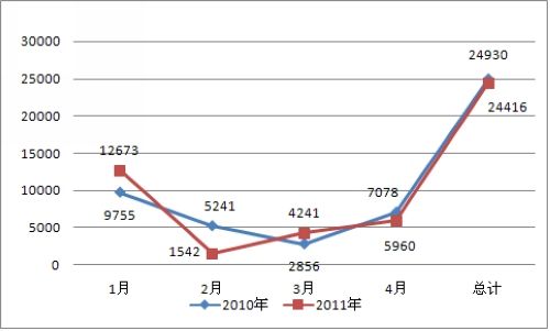 2010與2011年1-4月公路客車銷量統(tǒng)計(jì) 單位:輛