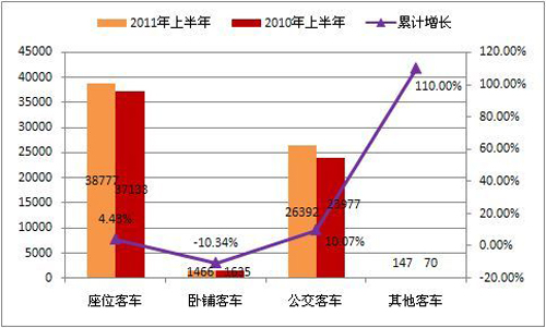 2011年6月,客車市場需求快速回升,環(huán)比和同比均呈較快增長;上半年,客車銷售同比增幅高于前5月,有平穩(wěn)回升跡象。