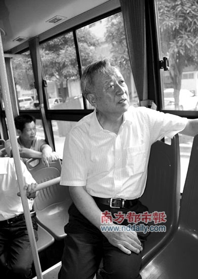2010年8月23日,王秉剛體驗(yàn)混合動(dòng)力系統(tǒng)的新型公交車。