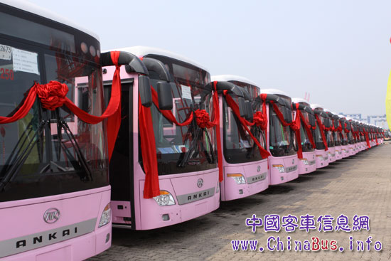 在發(fā)車儀式現(xiàn)場,數(shù)百輛粉白相間的安凱校車形成了一個(gè)巨大方陣,氣勢宏大,從遠(yuǎn)處看分外惹眼。據(jù)悉,本次出口車型是安凱客車根據(jù)沙特政府相關(guān)規(guī)定,和當(dāng)?shù)乜蛻粜枰可泶蛟斓?2米校車,型號為HFF6121GZ-4A。這也是安凱公司繼07、08年出口沙特1000臺客車之后的又一次大訂單。