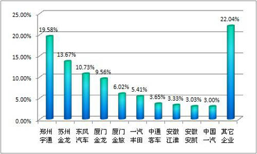 2011年上半年大中型客車企業(yè)市場(chǎng)占有率