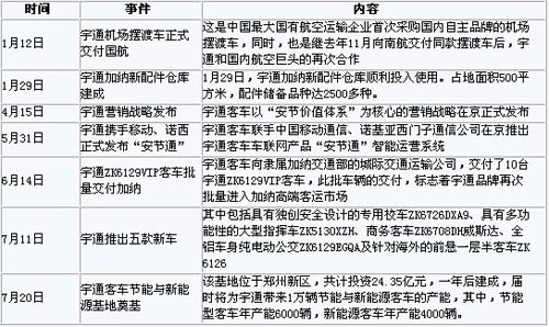 2011年上半年宇通客車主要?jiǎng)討B(tài)