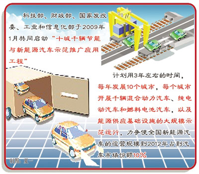 和濟(jì)南市一樣,全國有20多個(gè)城市在進(jìn)行節(jié)能與新能源汽車示范推廣運(yùn)行。為進(jìn)一步推動(dòng)新能源汽車的產(chǎn)業(yè)化進(jìn)程,在更大范圍推廣應(yīng)用新能源汽車,科技部、財(cái)政部、國家發(fā)改委、工業(yè)和信息化部于2009年1月共同啟動(dòng)了“十城千輛節(jié)能與新能源汽車示范推廣應(yīng)用工程”。