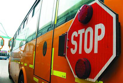 在車體的后部,記者注意到一個(gè)紅色的大大的 “STOP”警示裝置,是該款校車專門設(shè)計(jì)的停車示意臂,曲國(guó)慶笑著說(shuō)“這個(gè)裝置好比是牛腿子,要停車時(shí),駕駛員只要一按駕駛區(qū)的操控按鈕,這個(gè)裝置就會(huì)自動(dòng)打開(kāi),提醒后方車輛注意!瘪{駛員邊演示操作邊說(shuō),該款車從多個(gè)層面采用駕駛員360度無(wú)盲區(qū)設(shè)計(jì),都是從安全因素考慮。