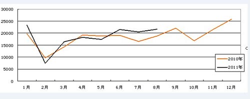 分析1-8月份客車銷量數(shù)據(jù),有3個顯著特點: