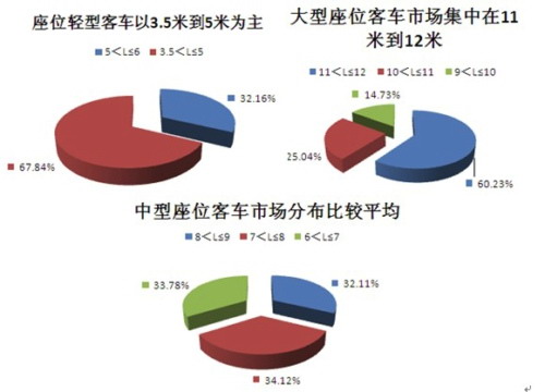 而據數據得知,輕型客車和大型客車的主流市場也集中在這兩個長度區(qū)間。與此相反,中型座位客車市場分布比較平均,在整體市場中均占據約12%的份額。