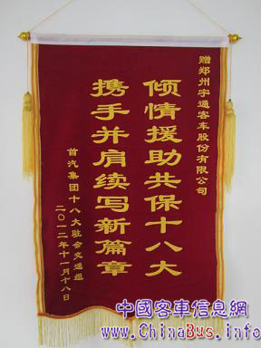 首汽集團十八大交通組贈送宇通公司錦旗