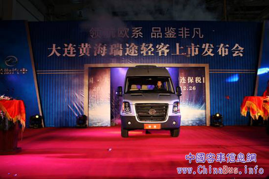 2012年12月26日,由黃海汽車傾力打造的歐系領(lǐng)航級(jí)商用車——瑞途Raytour,在大連隆重舉行上市發(fā)布會(huì),拉開了黃海汽車進(jìn)軍高端輕客市場(chǎng)的序幕。遼寧省政府領(lǐng)導(dǎo)、大連市委市政府、大連保稅區(qū)各級(jí)領(lǐng)導(dǎo)、以及業(yè)內(nèi)專家、行業(yè)媒體及合作伙伴共同見證了這一偉大歷史時(shí)刻。至此,黃海汽車系列已經(jīng)形成包括大中型客車、SUV及皮卡、特種車、輕型客車四大產(chǎn)品平臺(tái),“大黃!睉(zhàn)略初步形成。