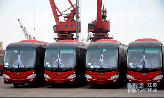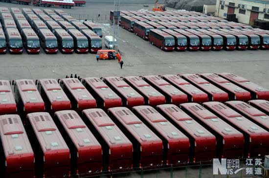2月12日,江蘇連云港港口碼頭貨場停滿了等待裝船出口的國產(chǎn)客車。 當(dāng)日,302輛河南生產(chǎn)的宇通牌大型豪華客車將從連云港港口碼頭裝船,準(zhǔn)備出口到蘇丹。近年來,國外對中國生產(chǎn)的車輛需求量越來越大,從連云港港出口的國產(chǎn)客車數(shù)量猛增,連云港港已成為我國出口車輛、機(jī)械的重要口岸之一。